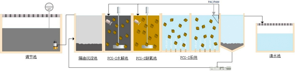 1,應(yīng)用PCG-S型載體強化特定污染物質(zhì)的生化反應(yīng)轉(zhuǎn)化及去除。
